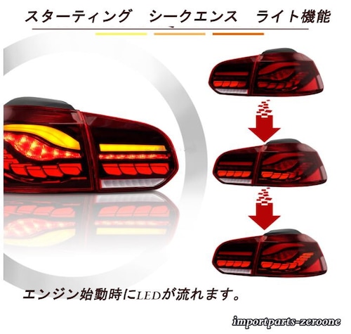 VW ゴルフ6 2008-2013 流れるウインカー LED テールランプ MK6 レッド or スモーク -NI-1017